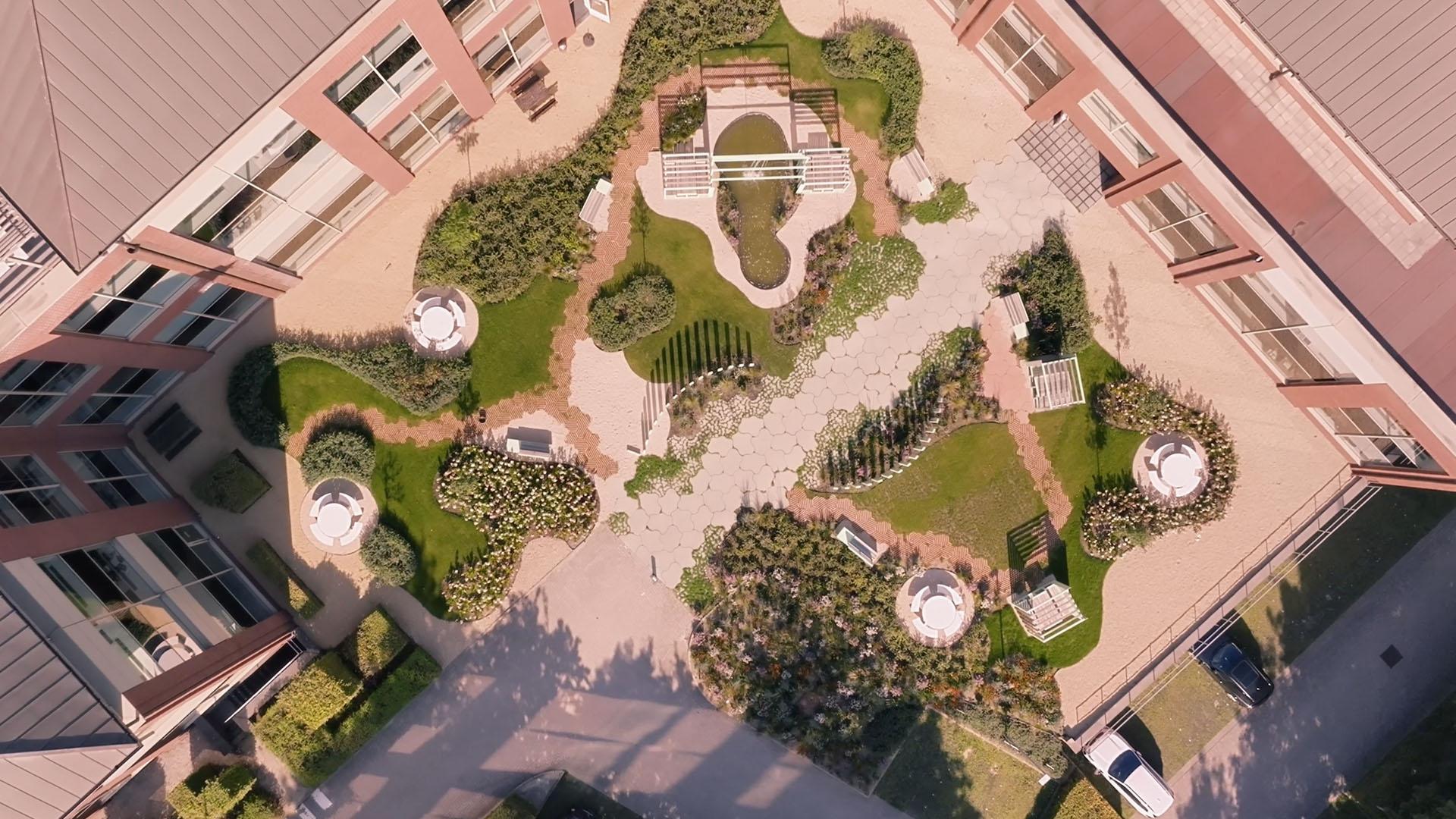 De buitenruimte kreeg een make-over die zowel mooi oogt als uitnodigt tot gebruik. Vergaderen in de openlucht, picknicken of gewoon even bijpraten: elke plek heeft zijn eigen karakter. Esthetiek en comfort staan centraal, met planten die van winter tot zomer kleur brengen én de biodiversiteit versterken. Een mix van prairieplanten en siergrassen zorgt voor een levendig, natuurlijk effect en lokt nuttige gasten zoals bijen en vlinders.