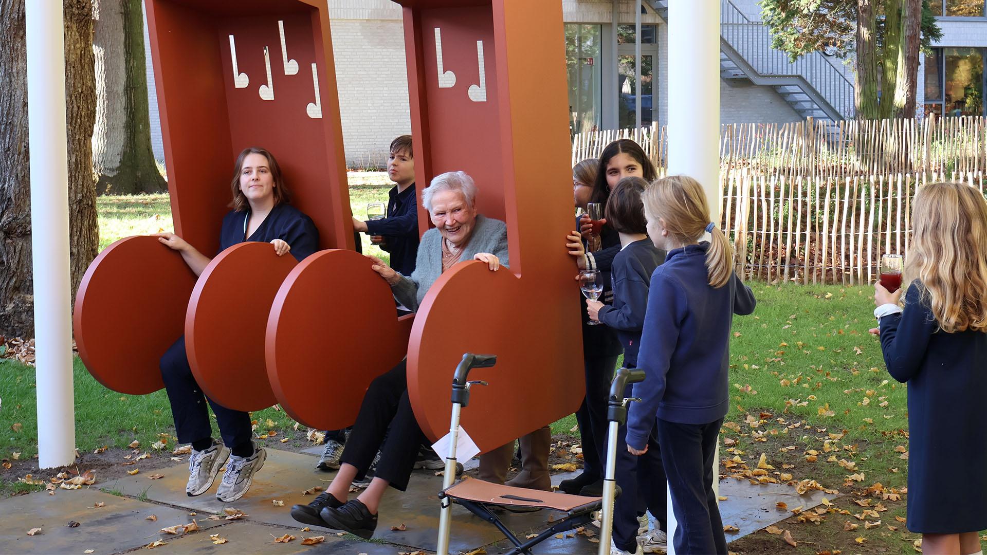 Geïnspireerd door deze methode, maakte unik-id een schommel die meebeweegt op het ritme van de ander. Zoals dansende benen of muzieknoten die samen één harmonieus geheel vormen, nodigt deze schommel uit tot beweging: Stap voor stap, ritmisch, en in verbinding met elkaar. Zo opent de schommel al wiegend de deur naar verbeelding en interactie tussen mensen met en zonder dementie.